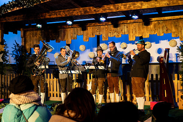 Traditionelle Klänge und weihnachtliche Weisen sorgen für eine besinnliche Atmosphäre und stimmen auf den Höhepunkt des Abends ein.