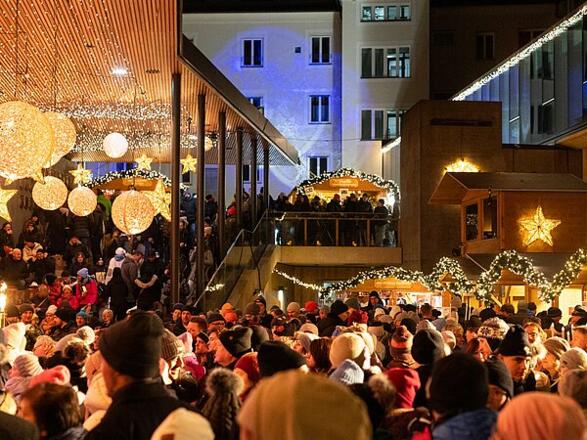Die dritte Kerze wird vom Chor der Volksschule Hans Sachs entzündet - ein stimmungsvoller Moment, der Licht und Wärme in die Adventzeit bringt. Im Anschluss folgt eine kleine weihnachtliche Darbietung.