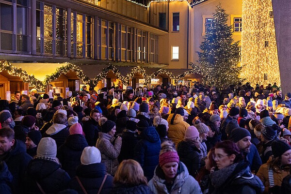 Mit traditionellen Klängen und weihnachtlichen Weisen begleitet die Stadtmusik den Abend und stimmt auf den Höhepunkt des Programms ein.