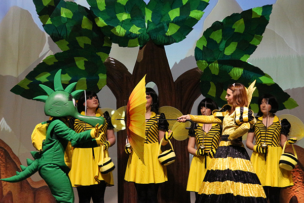 Liebevolle Kostüme und innovative Bühnenbilder erwecken die Welt des kleinen Drachen zum Leben.