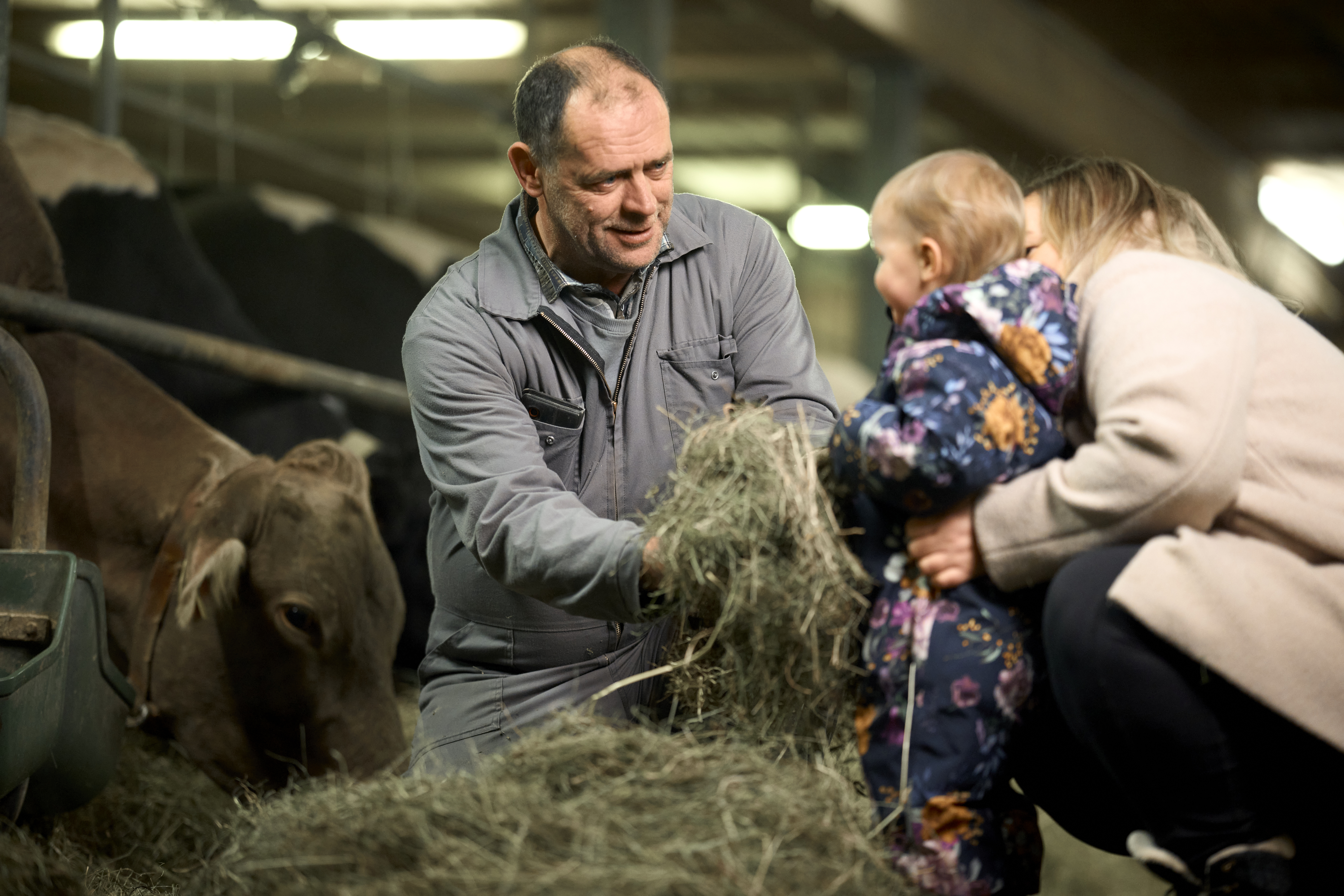 Du kannst beim Füttern dabei sein und miterleben, wie die Kühe gemolken werden. Ein Teil der Herde bleibt das ganze Jahr über am Hof für die tägliche, frische Milch.