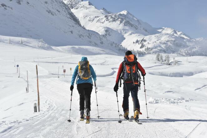 Tourenplanung, Auswahl und Durchführung einer Tour, Spur anlegen, Einschätzen von Gefahren im Gelände, LVS-Übung, Tipps zur Abfahrtstechnik.