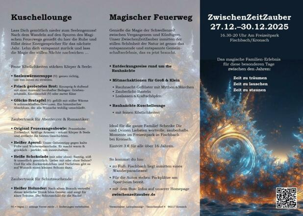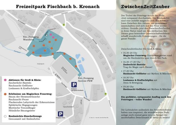 Magisches Familien-Erlebnis für die Tage zwischen den Jahren: Zeit zu träumen, Zeit zu lauschen, Zeit zu staunen. Rund um den idyllischen Freizeitpark Fischbach mit Magischem Feuerweg für Groß & Klein und Köstlichkeiten in der Kuschellounge.