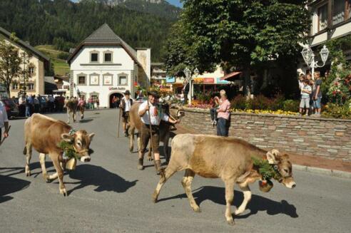 Der Almabtrieb hat in Fulpmes eine lange Geschichte. Hier wird der Festtag liebevoll von der Landjugend und den Jungbauern organisiert, begleitet von vielen freiwilligen Helfer:innen aus dem Ort. Die Kühe, kunstvoll geschmückt mit bunten Blumenkränzen, Spiegeln und Glocken, aber auch andere Tiere, ziehen durch das Zentrum von Fulpmes – ein beeindruckendes Schauspiel, das Respekt und Dankbarkeit gegenüber der Natur und dem bäuerlichen Leben ausdrückt. Vor allem für Gäste aus der Stadt ist es ein besonderes Erlebnis, diese Ursprünglichkeit hautnah mitzuerleben.