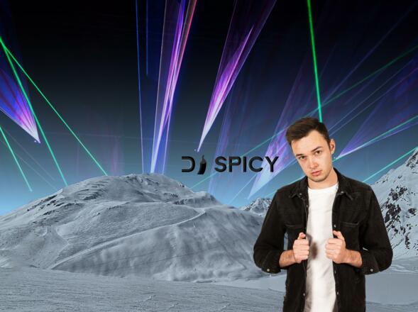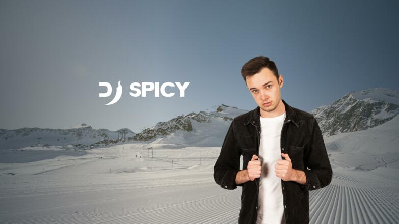 Am Nachmittag heizt DJ Spicy mit Electronic Dance Music auf der Sonnenterasse beim Gletscherrestaurant Kristall ein.