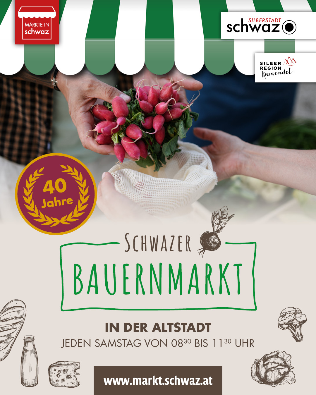 40 Jahre Schwazer Bauernmarkt das feiern wir heuer gemeinsam mit den Bäuerinnen und Bauern - und zwar jede Woche in Form eines Jubiläumsjahres!