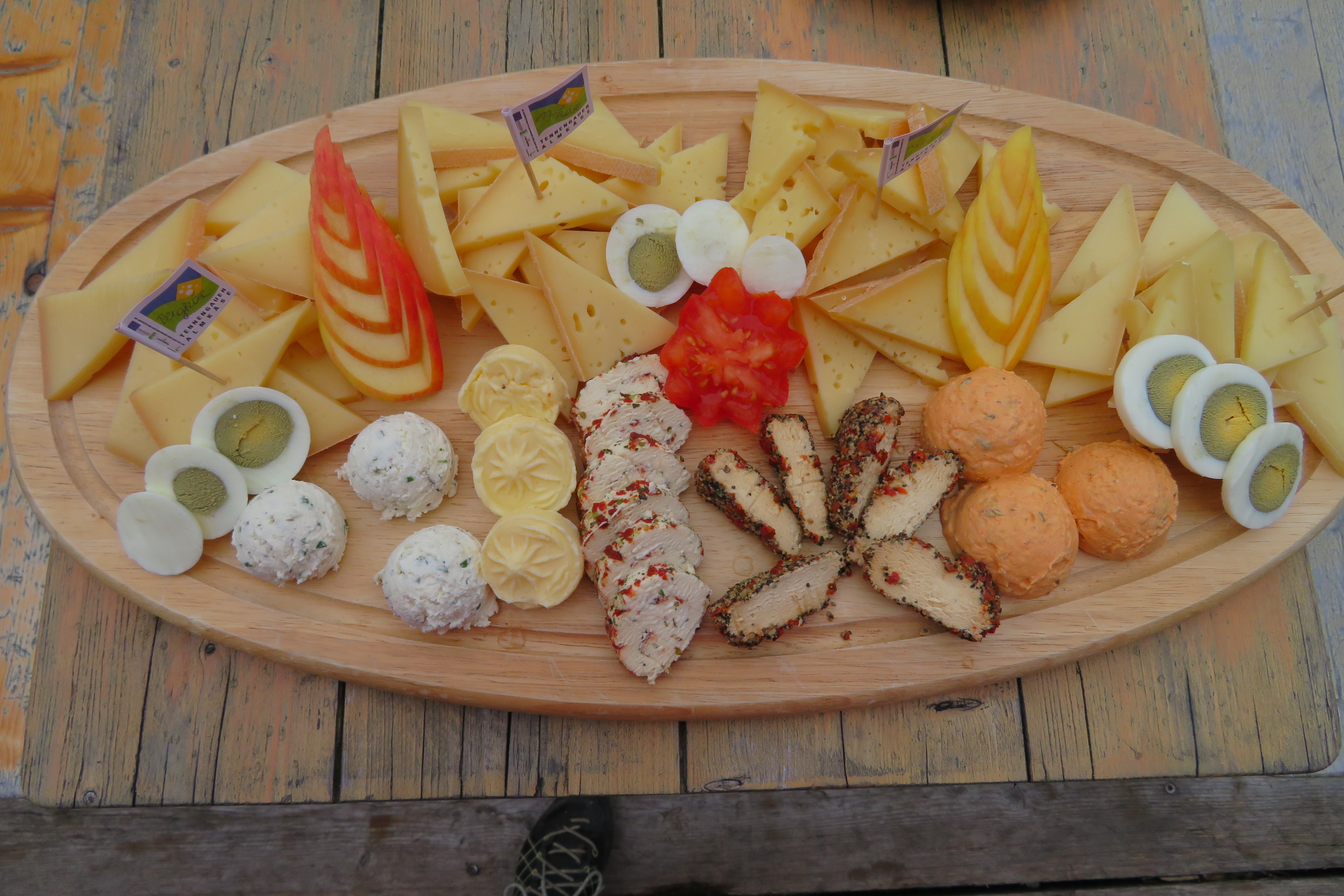 Auf der Rottenhofhütte gibt es 10 verschiedene Käsesorten (Hartkäse, Weichkäse) zu verkosten, wie selbstgemachten Butter, Sauerteigbrot und eine Molke.