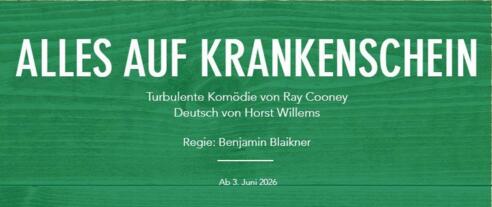 Das Seekirchner Theater öffnet wieder seine Pforten und lädt herzlich zu "Alles auf Krankenschein", Turbulente Komödie von Ray Cooney (Deutsch von Horst Willems) ein.