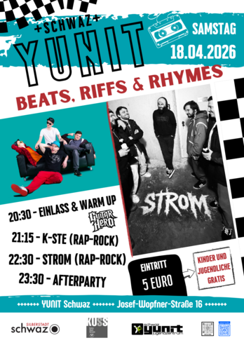 Im Jahr 2024 kam die Schwazer Band STROM zur Welt. Von ihrem Stammlokal aus, dem Pub "Ulllis"zieht es die Band STROM raus in die große Welt, um diese mit ihrem aufsässigen und energetischen Raprock à la Rage against the Machine zu erobern... aktuell haben sie es vom Schwazer Westen bis ins Stadtzentrum geschafft...