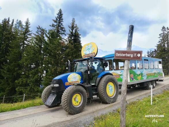 Rauf auf den Berg geht es auf gemütliche Weise mit der Gondelbahn von St. Johann Alpendorf. Auf 1.500 m Höhe beginnt dann das eigentliche Abenteuer. Man kann ab der Bergstation der Gondel die 5km Erlebnis- und Spieleweg bis zum Gipfel des Gernkogels hochwandern, oder sich gemütlich vom Geisterbergzug direkt auf den Gipfel bringen lassen. Entlang des Weges befinden sich über 40 Spielestationen immer umgeben von atemberaubendem Bergpanorama. Die zu überwindenden 200 Höhenmeter vergehen hier auch für (gehfaule) Kinder im Flug. Nehmt euch für das Erlebnis am Geisterberg mindestens 3-5 Stunden Zeit um den Erlebnisberg auch richtig genießen zu können.