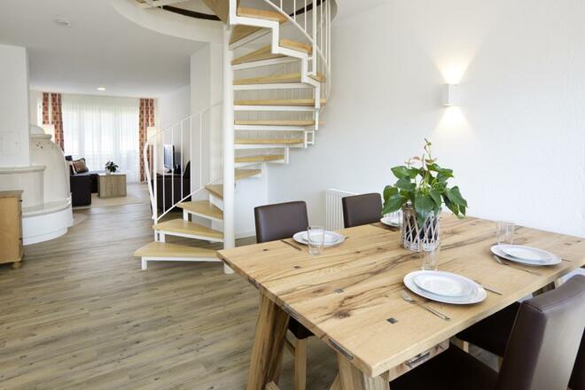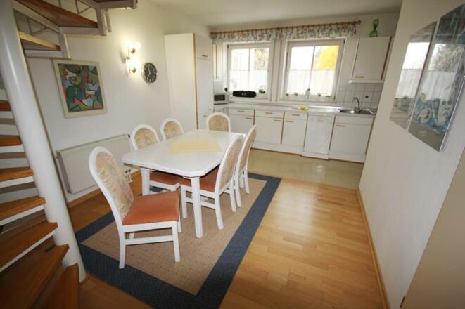Die Ferienwohnung 128 erstrahlt seit Mai 2018 in neuem glanz sie bietet Platz für bis zu 4 Personen.Im Obergeschoss befinden sich das Wohnzimmer mit einer schönen Wohnlandschaft zum Entspannen und einem Flachbildschirm-TV, IPod-Dockingstation und die Küche mit Backofen, Mikrowelle, Spülmaschine und Kaffeemaschine, sowie alles was man für den täglichen Bedarf benötigt .Im Dachgeschoss befinden sich die beiden Schlafzimmer (1 x Doppelbett & 1 x 2 Einzelbetten) sowie das Badezimmer. Dieses verfügt über eine Badewanne.Ein weiteres Highlight der Wohnung ist der gemütlichen Balkon. Dieser lädt ein zum Entspannen und Verweilen.SonstigesIm Preis enthalten sind: Nebenkosten (Strom, Wasser, Heizung, Müll, etc.), die gesamte Wäsche (Bettwäsche, Handtücher, Duschtuch, Geschirrtücher), sowie die Endreinigung. Ab einem Aufenthalt von 14 Tagen ist ein zusätzlicher Wechsel der Wäsche im Preis enthalten.zusätzliches Handtuchpaket oder Bettwäsche: € 3,00 pro Person Kinderbett + Hochstuhl: per AnfrageMindestaufenthaltsdauer: Hauptsaison 7 Übernachtungen/Zwischensaison 5 Übernachtungen/Nebensaison 3 Übernachtungen
