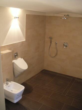 3 Doppelzimmer, Wohnraum mit TV, moderne elegante Duschbäder, Hof mit kleinem Garten und Sitzplatz, Parkplatz und abschließbare Fahrradgarage. Beson-ders geeignet für Familien.