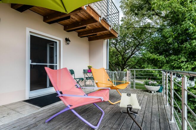Die im Erdgeschoss gelegene 60 qm große Wohnung besticht durch ihre freundliche Ausstattung. Die vollausgestattete Küche (inkl. Backofen, Mikrowelle, Kühlschrank, Gefrierschrank, Kaffeemaschine, Wasserkocher, Eierkocher, Nespresso-Maschine, Geschirrspülmaschine, Waffeleisen) mit gemütlicher Sitzecke ist besonders gut geeignet für ausgiebige Kochabende. Das offene Wohnzimmer mit gemütlicher Einrichtung lädt seine Gäste für lange Filme- oder Spieleabende ein. Spiele, Bücher sowohl für Kinder als auch für Erwachsene, Malutensilien und DVD´s stehen den Gästen zur Verfügung. Zudem kann die Couch als Schlafmöglichkeit für 2 weitere Personen genutzt werden – somit ist die Wohnung perfekt für Familien mit Kindern bis zu 4 Personen geeignet. Das liebevoll eingerichtete Schlafzimmer mit einem großen Doppelbett und Allergiker-Bettwäsche (auch geeignet für Veganer) in Übergröße und das Badezimmer mit begehbarer Dusche und WC runden die Wohnung ab. Die Schlafräume (Schlafzimmer und Wohnzimmer) sind seit neuestem mit Klimaanlagen ausgestattet.Zudem verfügt die Wohnung über eine große Terrasse, diese kann besonders gut für Grillabende, aber auch Frühstück im Freien genutzt werden. Gibt es denn etwas Schöneres als mit einem Blick auf die Berge den Tag zu starten?Außerdem steht den Gästen ein Waschraum (Waschmaschine, Trockner, Waschmittel, Bügelbrett und -Eisen) zur Verfügung. Die Nutzung und die Preise nach Absprache.Unsere Ferienwohung ist in der Nähe einer Golf– und Minigolf-Anlage und auch das Stadtzentrum von Wasserburg am Inn kann mit dem Auto in ca. 15 Minuten erreicht werden. Der Chiemsee, die Alpen und die Städte Rosenheim, München und Salzburg können bequem mit dem Zug erreicht werden – Haltestelle nur wenige Minuten mit dem Auto oder dem Rad entfernt.Auch einige Restaurants, Bars, diverse Einkaufsmöglichkeiten (von Drogerie, über Bäckereien, bis hin zu Supermärkte und Discounter) sind ganz in der Nähe. Ein Schwimmbad, die Chiemgau-Therme, die Therme Erding und verschiedene Badeseen stehen in der Nähe zur Verfügung. Bei fixer Buchung überweisen Sie bitte den fälligen Betrag 2 Wochen vor der Anreise an den Gastgeber. Bzgl. Kontodaten wenden Sie sich bitte direkt an den Vermieter. Vielen Dank!