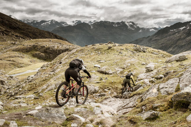 Das hochalpine Naturtrail-Highlight der BIKE REPUBLIC SÖLDEN startet am Tiefenbachgletscher. Es ist ein tiefschwarzes Spektakel in anspruchsvollem, exponiertem Gelände.