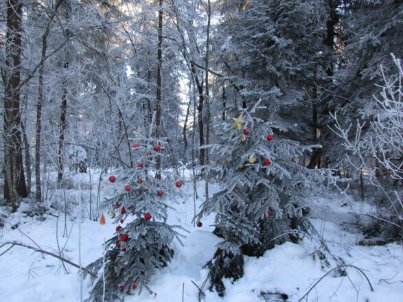 um die Weihnachtszeit können im Filzmooswäldchen geschmückte Bäumchen bewundert werden.