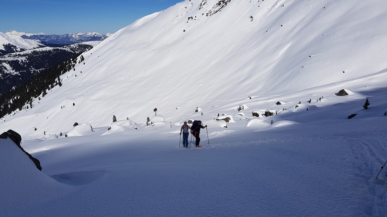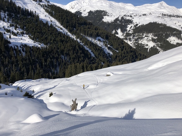 Steile nordseitige Tour. Sichere Lawinensituation und gute Skitourentechnik sind nötig.