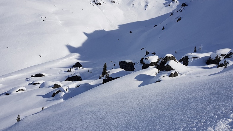 Der Fünfmandling (fünf Steinmänner am Gipfel) mit seinen steilen Nordhängen bietet einsames Pulververgnügen. Vorausgesetzt die Verhältnisse lassen es zu, sind doch einige steile Hänge zu begehen.