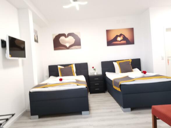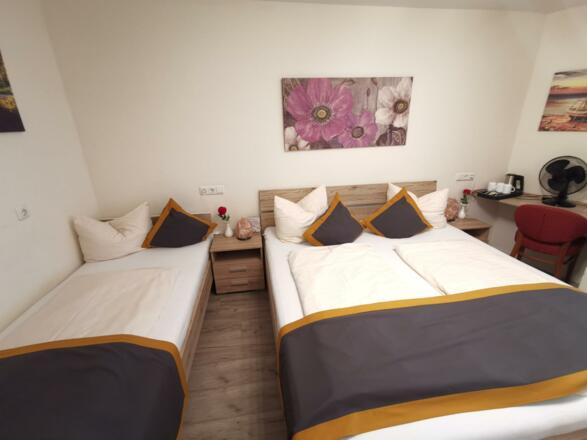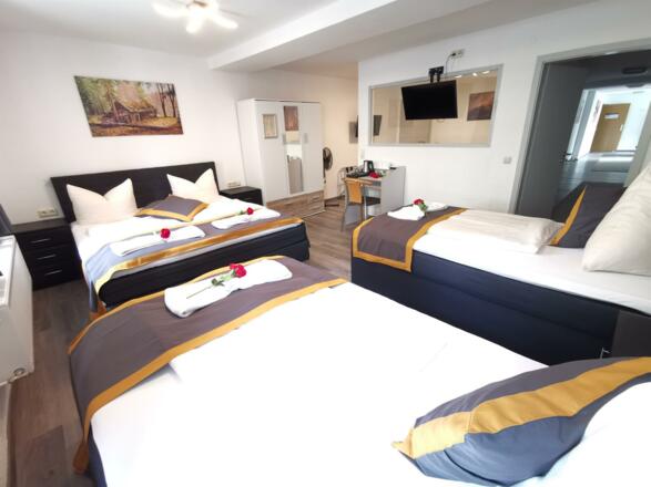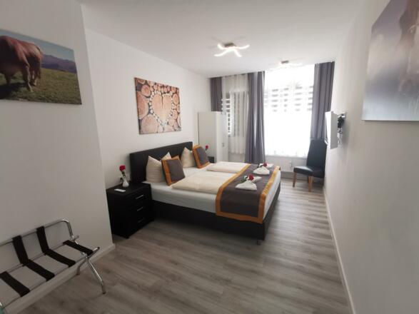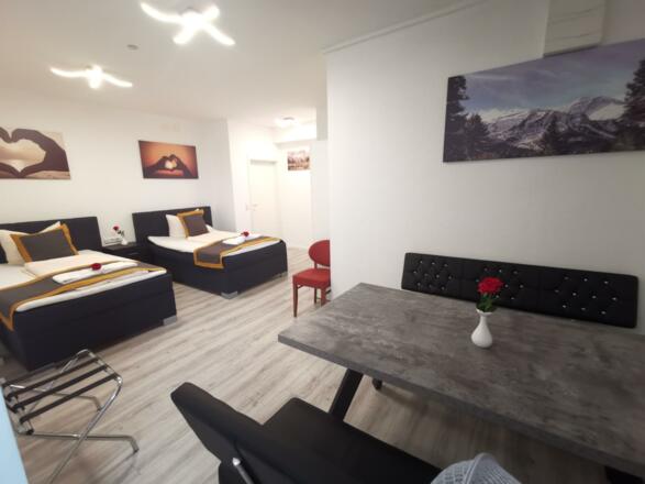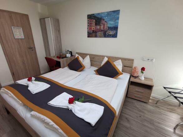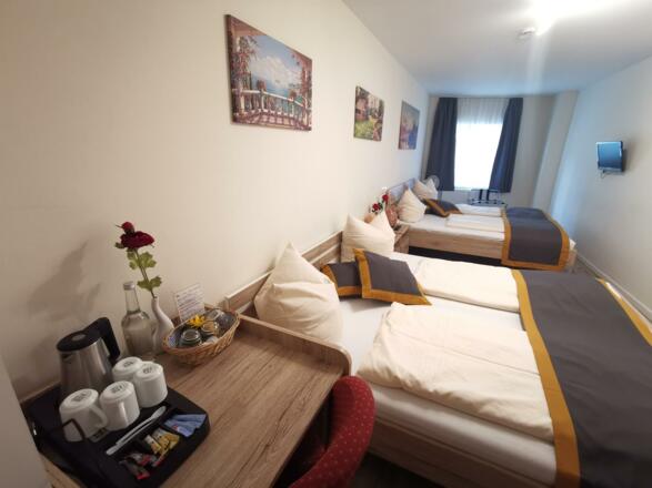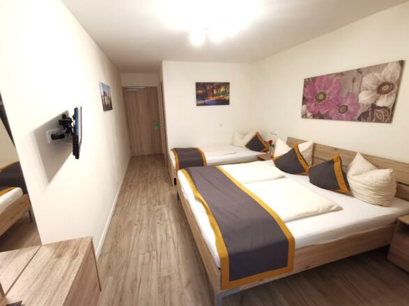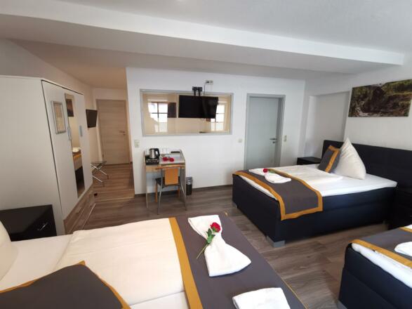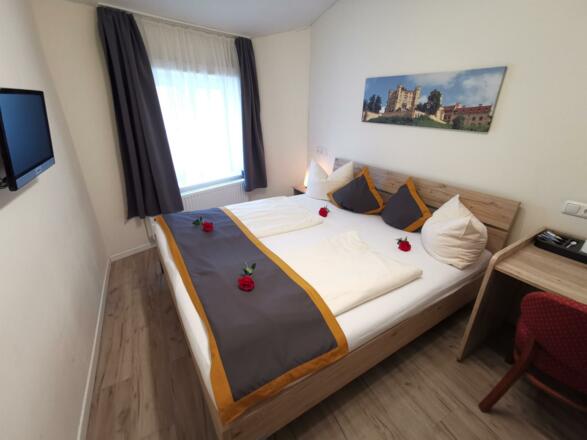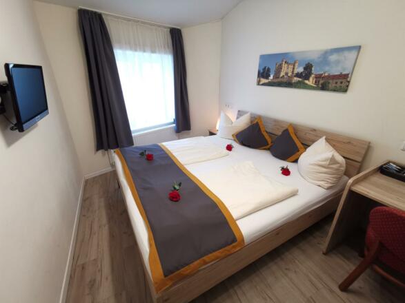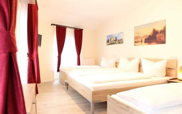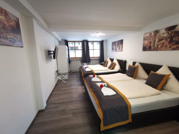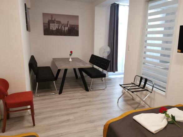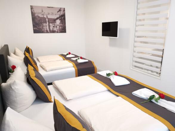 Herzlich Willkommen im City Hotel Garni in Füssen, direkt im Herzen der Füssener Altstadt. Umgeben von historischen Gebäuden, wohnen Sie im City Hotel Garni in Füssen in frisch sanierten und modernen Gästezimmern. Das Hotel befindet sich in einem denkmalgeschützen Gebäude, direkt in der Innenstadt. Die Lage ist ideal für Städtereisende und Naturfreunde. Direkt in der Nähe finden Sie zahlreiche Geschäfte und Restaurants, das Hohe Schloß sowie das Kloster St. Mang. In wenigen Gehminuten erreichen Sie den Lech, der von Österreich in den Forggensee und weiter Richtung Augsburg fließt.Moderne, helle und freundliche Gästezimmer erwarten Sie im City Hotel Garni in Füssen. Das City Hotel Garni wurde im Jahr 2017 in einem denkmalgeschützen Gebäude neu erbaut und verfügt über insgesamt 5 Doppelzimmer, einem Vierbettzimmer und einem Dreibettzimmer. Alle Hotelzimmer verfügen über ein modernes Bad mit Dusche und WC. Die hellen und geräumigen Zimmer verfügen über Flat-TV Geräte, 230V Steckdosen, Fön im Bad und sind alle zwischen 20 und 25 Quadratmeter groß.Alle Zimmer befinden sich im 1. und 2. Obergeschoss und sind per Treppe bequem erreichbar. Da wir ein Nichtraucher-Hotel sind, ist das Rauchen auf den Zimmern nicht gestattet. Alle unsere Zimmer sind schallisoliert und nach aktuellem Standard mit Rauchmeldern ausgestattet. Im Aufenthaltsraum befindet sich ein Kaffeeautomat und ein Getränkeautomat, die 24 Stunden für Sie zur Verfügung stehen. Frühstück ist gegen Aufpreis erhältlich und umfasst ein Buffet mit "All you can eat".SonstigesEine Vorauszahlung in Höhe von 50 % des Gesamtpreises kann jederzeit nach Buchung berechnet werden.Die Bezahlung erfolgt bar vor Ort.Stornierungen bis zu 7 Tage vor Anreise sind kostenfrei. Für spätere Stornierungen erfolgt keine Erstattung.Die Anreise ist von 15 bis 20 Uhr möglich.Die Abreise ist bis 10:30 Uhr möglich.Die Schlüsselübergabe erfolgt persönlich vor Ort.Haustiere sind erlaubt (9,90€ pro Tier/Tag).Eine Kurtaxe in Höhe von 2,20€ pro Person/Nacht wird vor Ort separat berechnet.Parken: 7,90€ pro TagInformationen zu Inklusiv-Leistungen: WLAN, Bettwäsche, Handtücher, Endreinigung