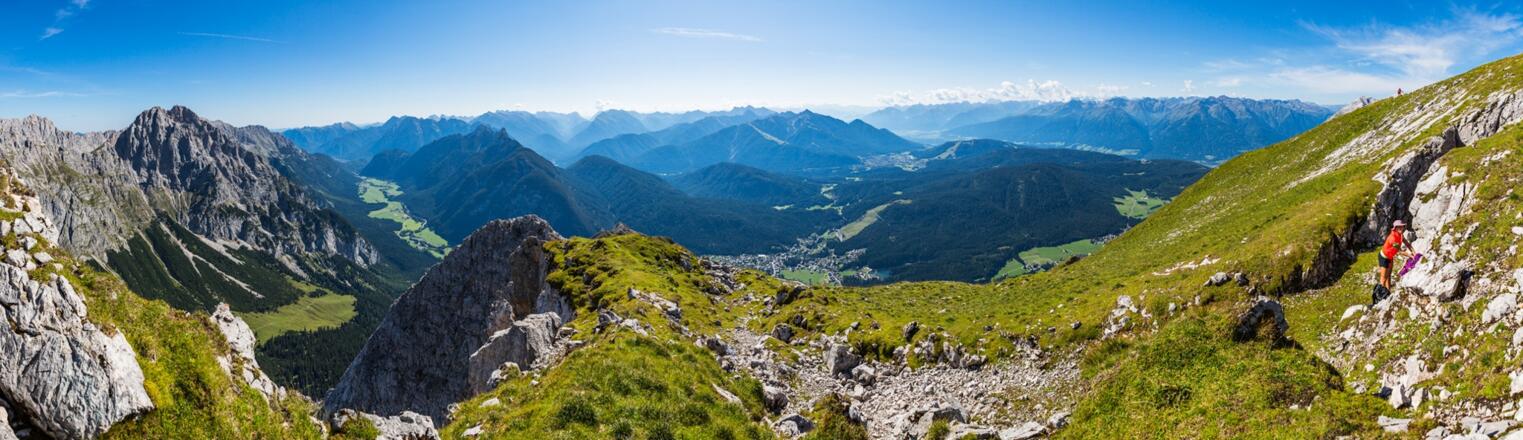 Mittelschwere, landschaftlich wunderschöne Tour durch das beschauliche Puittal auf die Gehrenspitze. Am Grat Schwindelfreiheit und Trittsicherheit notwendig. Wunderbare Aussicht auf das Wettersteingebirge, Hohe Munde und über das Inntal hinaus.