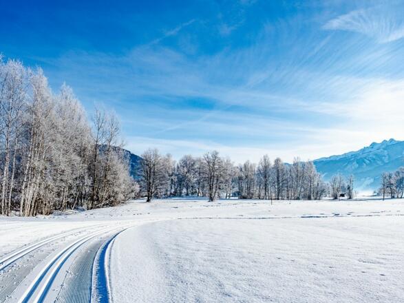 Wenn man sich im Bereich Salzachbrücke die Skier abschnallt, sind es nur wenige Meter zu Fuß und man kann in die Schloßloipe oder die Loipe nach Bruck einsteigen.