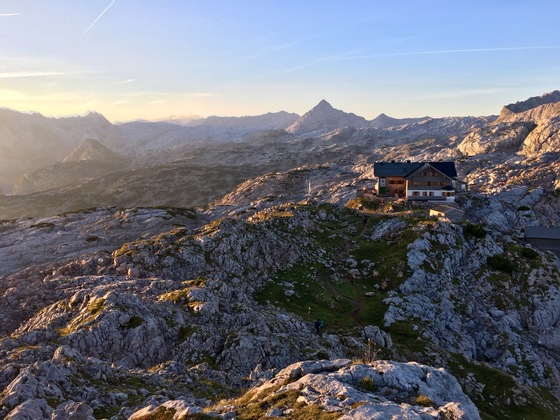 ANSTIEG: Von Materialseilbahn am markierten Weg zu Seilsicherungen ~1810 m, auf ein Plateau und ab 2020 m auf Schneefelder queren. Dann kurz hinauf zur DAV-Hütte 2119 m. Vom Ingolstädter Haus N-wärts über Karstgelände in den Sattel und rasch links zum Kleinen Hundstod 2263 m. Zurück und über die sehr steile Geröllflanke auf den Gipfel des Großen Hundstod 2594 m (1035 HM; 2 1/2 Std. bei zügigem Anstieg).