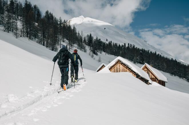 Normale Skitourenausrüstung inkl. LVS-Set.