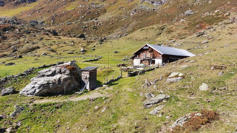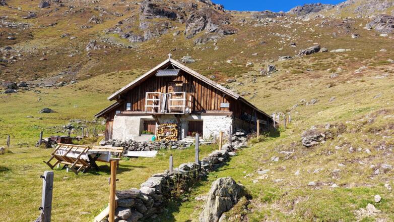 Die Grafmartalm liegt im Navistal auf 2162 m Höhe. Es gibt keinen Ausschank, allerdings einen Brunnen.