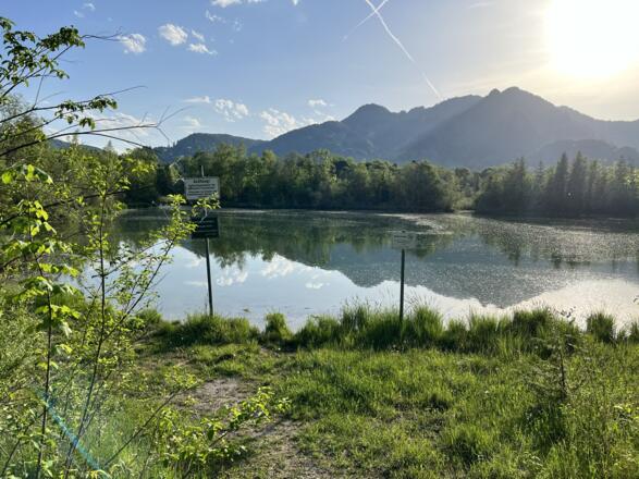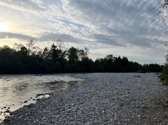 Sobald ihr die Straße überquert habt, folgt ihr dieser ein Stückchen nach links. Anschließend biegt ihr rechts ein, um dem Toni-Seber-Weg direkt an der Isar entlang zu folgen. Falls ihr auf dieser Strecke den eigenartigen Lockruf "Tutli-i-i, Tutli-i-i" vernehmt, hört ihr den lieblichen Gesang der verwunschenen Isarnixe. Dieser wurde besonders von Flößern aus Tölz gefürchtet, da er laut der Sage bereits einige in den "nassen Tod" gelockt hat. Um sich davor zu schützen, ist eine erfolgreiche Methode sich die Ohren zu verstopfen oder einen geweihten Gegenstand mit sich zu tragen³. Auf diesem Teil der Route bitte außerdem die Schilder beachten, die nicht nur einige wichtige Hinweise beinhalten, sondern auch interessante Fakten zu verschiedenen Pflanzen und Tieren. Hier findet ihr auch einige Möglichkeiten, wo ihr direkt an die Isar gelangt. Den besten Platz findet ihr, sobald ihr den Lenggrieser Baggerweiher passiert habt. Dort gibt es einen großen Platz, der sich perfekt für eine kurze Pause eignet, wo ihr auch eure Füße im kühlen Isarwasser baumeln lassen könnt.