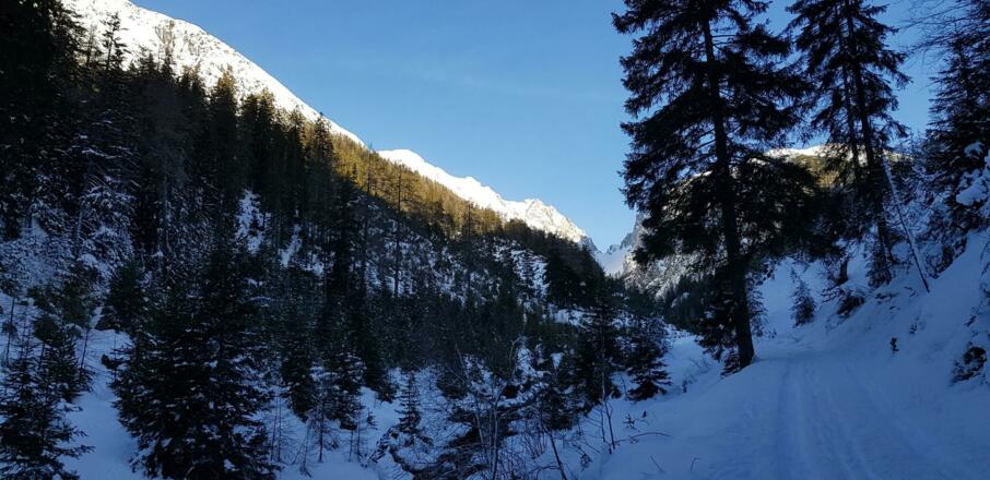 Vom G asthof Arzkasten geht es zuerst der Rodelbahn entlang bis zur Brücke. Hier zweigt nun der Weg links am Talboden entlang ab. Über diesen immer weiter taleinwärts bis es nach rechts kurz steiler hinauf zum Lehnberghaus geht. Bis hierher kann auch, je nach Schneelage, über die Rodelbahn aufgestiegen werden. Nun noch ein kurzes Stück weiter entlang der Forststraße zum Wasserschloß. Ab hier ist nun auch das Ziel schon gut zu sehen, welches auf direktem Weg erreicht wird.