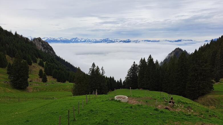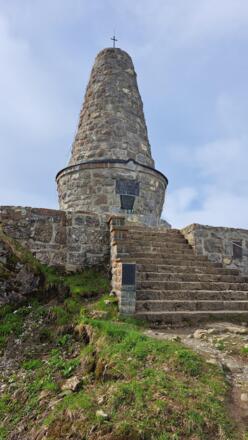 Der Grünten, bekannt als der Wächter des Allgäus schon aus der Ferne an seinem Sendemast zu erkennen. Weniger bekannt ist wohl der Name Übelhorn. Vom Gipfel hat man einen phantastischen Ausblick über die Allgäuer Alpen und noch viel mehr. Auf dem Gipfel erinnert ein Kriegerdenkmal an gefallene Soldaten.