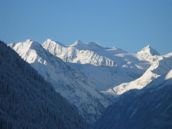 Ruhige, sonnige Lage mit Blick auf den Stubaier Gletscher. Gästeküche.