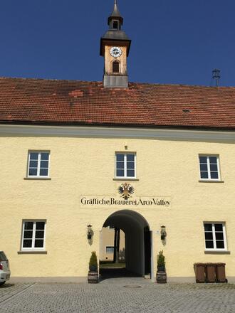 Kurze flache Etappe, auf ruhigen Nebenstraßen durch idyllische Dörfer. Blick auf die Voralpen. Einkehrmöglichkeit im Valleyer Bräustüberl.