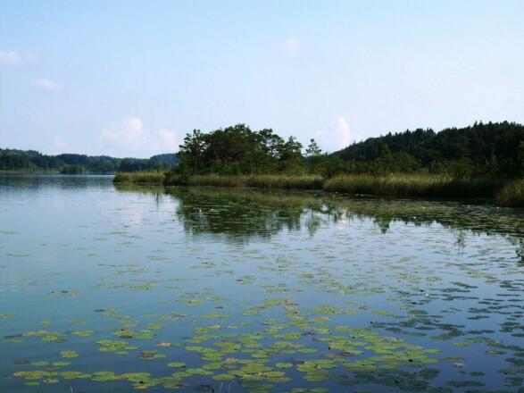 Die Wanderung um den Hartsee beginnt direkt am Strandbad vom Hartsee und führt einmal gemütlich um den See herum.