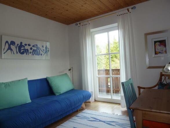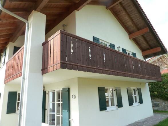 Liebevoll eingerichtete Doppelhaushälfte, Baujahr 98, 140 qm, für 2-7 Personen. Allergikerfreundlich, helle Räume. Erdgeschoß: gr. Wohnraum mit Terrasse, sep. Küche, Duschbad. 1 Etage: 3 Schlafräume, umlaufender überdachter Balkon, Duschbad. Dachstudio: lichtdurchflutet 30 qm; 2 Kellerräume mit Waschmaschine,Gefrierschrank; 2 Carports, Garten mit zusätzlicher Terrasse, Südlage. Gebirgsblick, ruhig, 6 Gehminuten zum See. Nichtraucherhaus,keine Haustiere.