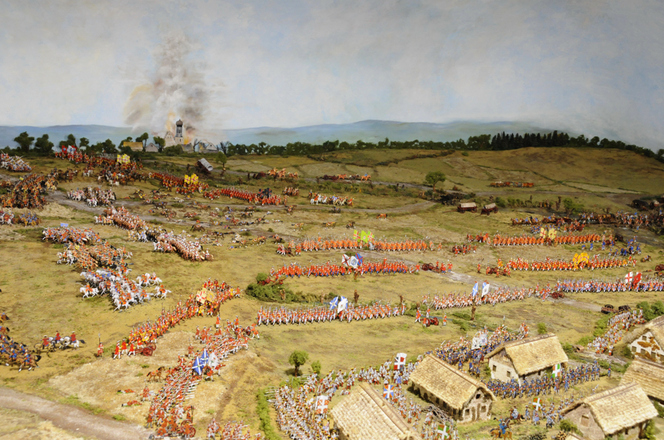 Diorama der weltgeschtlich bedeutsamen Schlacht im Spanischen Erbfolgekrieg am 13. August 1704 (9 000 Zinnsoldaten auf etwa 24 qm); umfangreiche Bestände aus Kunsthandwerk, Volkskunst, Orts- und Familiengeschichte,
