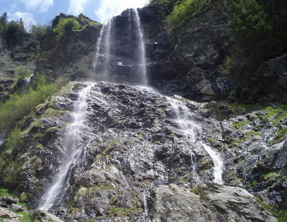 Beim Abstieg Richtung Wiesle passieren wir unter anderem die "Rauschwand". Beim Wiesle gibt es die Möglichkeit einzukehren, um nach einem kleinen Erfrischungsgetränk den kurzen letzten Anstieg zum Mausla-Jöchl mit frischer Energie anzugehen.