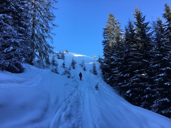 herrliche Skitour durch den Wald vom Alpendorf Ötzmoos bis Buchauhütte