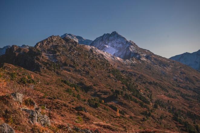 Retour geht es ein Stück auf dem Grat weiter zum Glotzenkreuz der Jungbauern. Nach dem Kreuz wieder über Almgelände und zwischen Almrosen hindurch gen Westen auf die Largozalm zu. Von dort entweder wieder über den Steig oder Forstweg hinab zum Parkplatz.