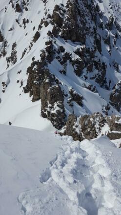 Helm kann nicht schaden. Ausreichende Schneedecke erforderlich da felsdurchsetzter Geröllhang zum Scharnitzsattel.