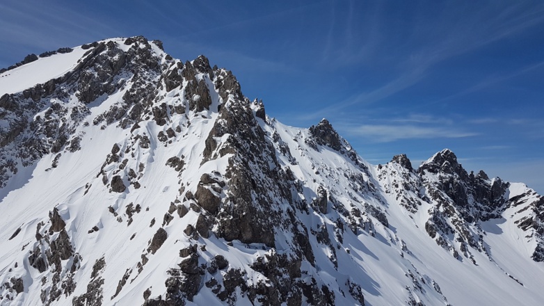 Mit der zugeschneiten Hahntennjochstrasse, dem Steinkar und Hahntennkar, Scharnitzsattel, Gipfelflanke und Gipfelgrat wird's sicher net fad. Vom Scharnitzsattel feinen Ausblick auf Imst und vom Gipfel den Ausblick auf das schöne Lechtal genießen.