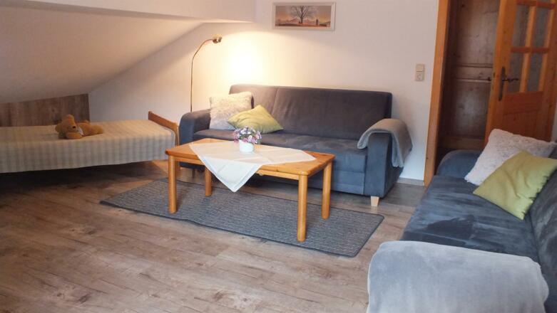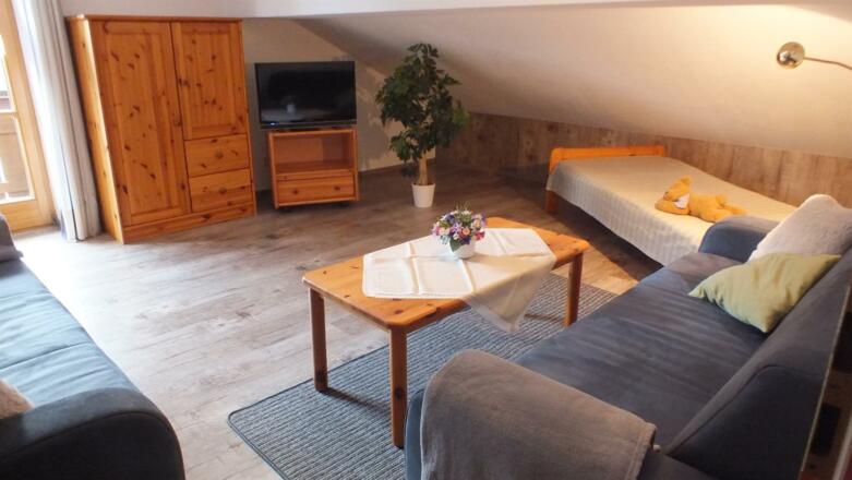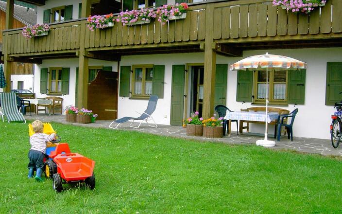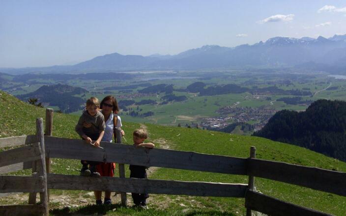 Ideale Ferienwohnungen zum Wohlfühlen - sehr geräumig und hell; 75 / 50 / 26 qm groß, für Familien, Senioren, Singles - in Seenähe.Viele Tiere, Spielplätze mit Trampolin, TT -platte, Slackline, Schlitten; Babyausstattung, Waschmaschine/Trockner, Sat-TV, SpülmaschineSee- und Bergblick von allen Balkonen / Terrassen, Parkplatz am Haus und viel Platz ringsum ein Grillplatz unterm ApfelbaumGanz nah: Freibad am See mit Kiosk, Tretbecken, Spielplatz; Bushaltestelle, Wander- u. Radwege,Tourist-Info, WLAN-Hotspot, kl. Dorfladen, EC-AutomatNeu: Kombi - FW 6 XL (das gesamte Dachgeschoss) - viel Platz für bis zu 7 Personen (105 qm)3 Schlafzimmer, 2 Bäder, 2 TV und eine große Küche mit Auszieh-Esstisch für alleAllergikerfreundlich: keine Teppichböden, Federbetten, oder Tiere in den WohnungenHöhenlage: 815 m mit guter, sauberer Luft zum DurchatmenSterne (DTV): 5 FW * * * * und 1 App. * * * / geprüfte Qualität (BAG) / Goldener Gockel 2018Tolle Bilder, Tipps und 'Allerlei' in unserer InternetseiteSonstigesInklusiv: Endreinigung und Bettwäsche sowieDusch-, Hand- und Küchentücher, (inkl. Wechsel bei mehr als sieben Tagen Aufenthalt)Strom, Wasser, Heizung, Sat-TV, Radio, Parkplatz, Kinderbett und Hochstuhl, SchlittenExtrakosten: Waschmaschine, Trockner, MilchKurzaufenthalt-Zuschlag (bis 5 Nächte) : Einmalig 20 - 35 Euro / je nach FW-Grösse u. Anzahl Nächte Unser Service: Zugreisende holen wir nach Absprache und Möglichkeit vom Bahnhof Füssen bzw. Pfronten ab