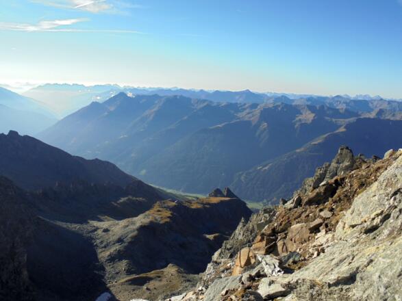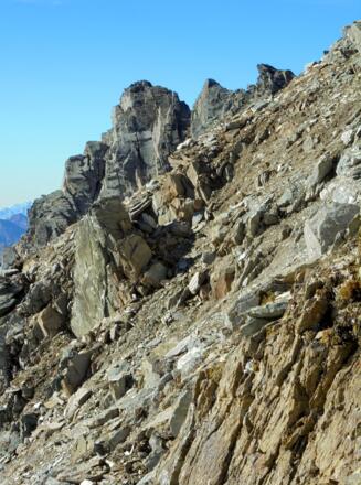Der Weg Nr. 930 führt von der Bonn-Matreier Hütte zum Säulkopf - erst durch ein Kar, dann steil aufwärts mit einigen seilversicherten Passagen. Auf 3.209 m ist der höchste Punkt unserer Tour erreicht. Anschließend geht es auf demselben Weg zurück zur Hütte.