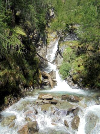 Der Venediger Höhenweg - jetzt als Weg Nr. 923 - führt auf der Südseite des Venedigermassivs westwärts. Erneut ist das Panorama großartig - unser Blick geht jetzt ins Virgen- und ins Timmeltal. Dann trennen wir uns auch vom Höhenweg - dieser führt weiter zur Eisseehütte, während wir in Richtung Prägraten absteigen. Nach dem Wasserfall des Timmelsbaches kann man direkt nach Prägraten absteigen - wir machen noch eine Runde hoch über dem Ort zum Ortsteil Bichl, ehe auch für uns die Tage in den Hohen Tauern zu Ende gehen.