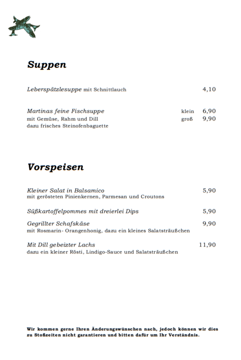 Öffnungszeiten Restaurant: täglich von 11.00 bis 24.00 Uhr