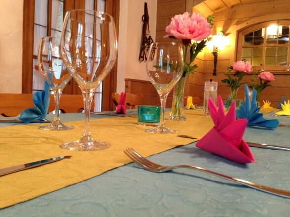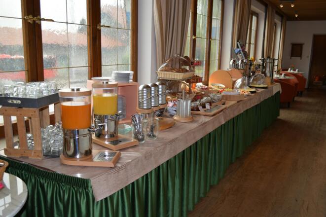3-Sterne Ambiente im Landhausstil. Freuen Sie sich auf unser liebevoll angerichtetes Frühstücks-buffet. Setzen Sie sich und planen Sie in aller Ruhe Ihren Tag Schöne ruhige Gartenterrasse, kleine Franz Marc Galerie mit vielen Büchern. Kostenfreier PKW Stellplatz, Fahrradgarage & kostenfreies W-Lan Zeit um unser Gute-Laune-Frühstücksbüffet zu genießen. 7.30-10.30 Uhr. Im Frühstücksraum oder im Sommer auch auf der Terrasse mit herrlichem Bergblick. Langschläfer-Frühstück im Stüberl 10.30-12.00 Uhr. Auf Wunsch Glutenfrei - bitte bei der Buchung mit angeben! Sie möchten steil Bergauf, gerne richten wir Ihnen für ihren Ausflug ein Lunchpaket.