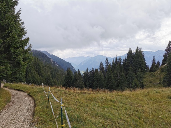 Fußweg ab Haltestelle: Überqueren Sie die Parkplätze/Parkflächen Richtung Westen. Erreichen Sie das Ende der Parkplatzflächen beginnt am linken Ende des Geländes von Schloss Linderhof die Tour/Wanderung.