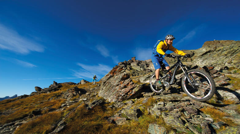 Grandiose Weitblicke! Ein-Tagesstrecke mit extrem langen Anstiegen, gespickt mit Downhill-Trails. Verkürzung durch Seilbahn möglich. Auf den Spuren des Ironbike Marathon Wettkampf-Feeling schnuppern. Die sehr lange und abwechslungsreiche Enduro-Strecke verläuft entlang der Ironbike Wettkampfstrecke und erfordert viel Kondition. Es sind aber auch lange Downhill-Passagen dabei. Zu Beginn braucht man schon einmal eine lange Ausdauer. Der Anstieg führt über den Höllboden hinauf bis zum Salaaser Kopf mit einer wunderbaren Aussicht. Von hier führt die Tour bis zum Zeblasjoch. Der anschließende Forstweg bringt einen ohne Schwierigkeiten bis nach Samnaun. Dem Tal entlang geht es bis nach Laret. Von hier folgt wieder ein langer Anstieg mit 1.000 hm über die Alp Trida bis zur Bergstation Flimjochbahn. Statt den Anstieg hinauf zu radeln, kann man von Samnaun bequem mit Gondel und Sessellift hinauffahren. Über den Singeltrail Flimjoch und den Velill-Downhill gelangt man zurück zum Ausgangspunkt.