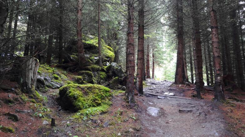 Ca. 600 m nach der Bergbahnstation - wobei Sie im weiteren Verlauf immer am Bach entlang gehen - dürfen Sie die Abzweigung nach links nicht verpassen. Nach einem kurzen Anstieg erreichen Sie den Schwarzwassersee und im Anschluss - etwas südlicher - den Pardatscher See.