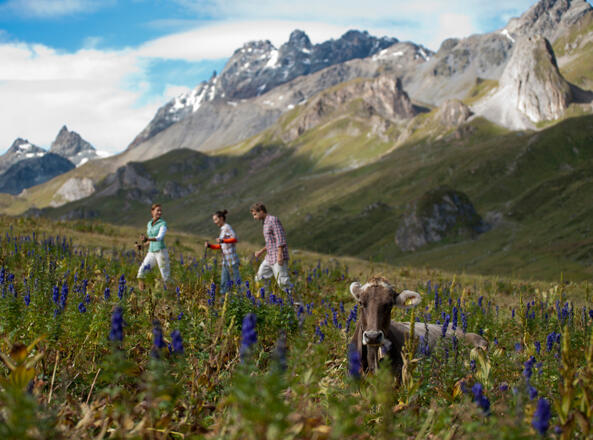 Mit der Seilbahn erreichen Sie die Idalp auf 2.320 m. Von dort gelangen Sie entweder zu Fuß oder mit dem Sessellift zum Idjoch. Danach folgen Sie dem Wanderweg Richtung Greitspitze (2.871 m). Weiter führt die Wanderung entlang der Grenze Österreich Schweiz, vorbei am Inner Viderjoch, bis Sie zum Salaaser Kopf (2.744 m) kommen. Eindrucksvoll ist der Blick zu den Fluchthörnern, die den Talabschluss bilden. Wandern Sie weiter am Alten Skiweg und Zollhütte vorbei zum Zeblasjoch (2.539 m). Von dort verläuft der Weg weiter bis zur Heidelberger Hütte. Rückweg: Durchs Fimbatal, oder Rücktransport mit dem Hüttentaxi der Heidelberger Hütte: Preis auf Anfrage.