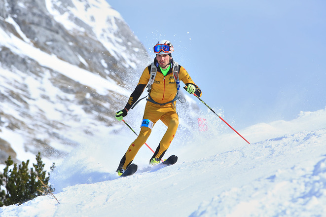Abfahrt im freien Gelände über die sog. Buckelpiste zum bewirtschafteten "Mitterkaser" (1530 m, Verpflegung, 3. Wechselzone)